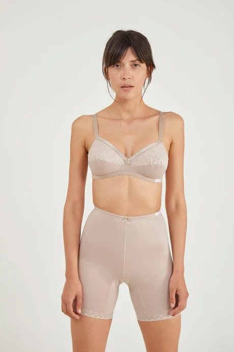 Trusa con pierna confeccionada con satine de lycra y puntilla.